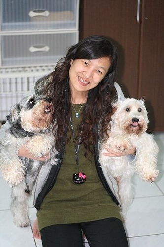 最左邊中間的"左擁右抱" 是我抱著卡布、哈嚕的照片喔~