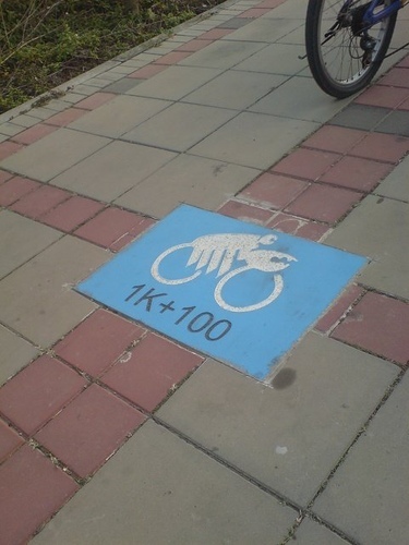 地上的路標很特別唷~ 他現在表示的"1k+100"就是1.1km的意思喔~