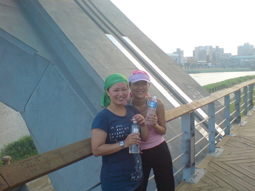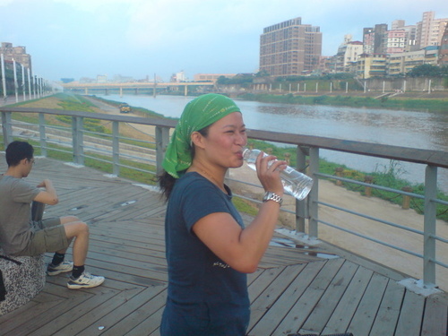 這是饒河街附近的彩虹橋 在這裡暫時休息一下 這時惠如已經開始猛喝水囉!!
