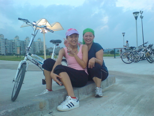 YA!! 終於騎回家囉~ 惠如的臉還真紅!! ( 今天來回一共騎了52.9公里喔!! )
