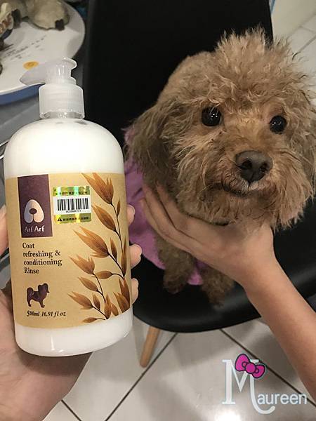 護毛乳因為有修護受損皮毛、滋潤保濕、形成保護膜等功效,所以哈妮乾澀的毛髮用完後摸起來很柔順喔!