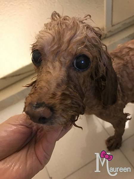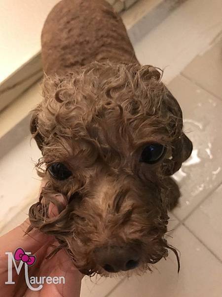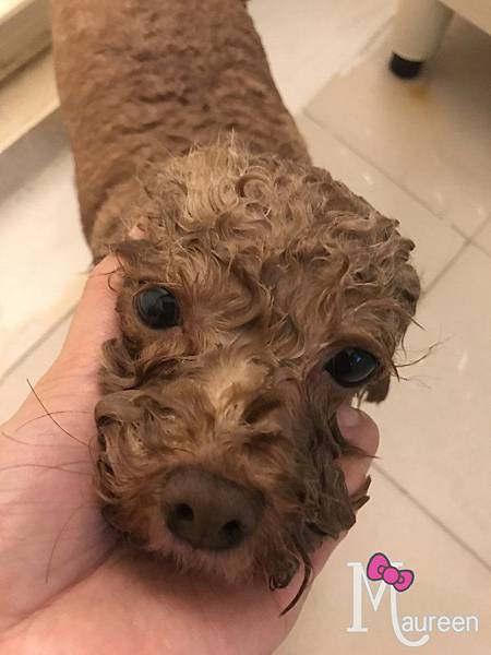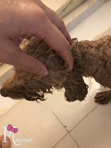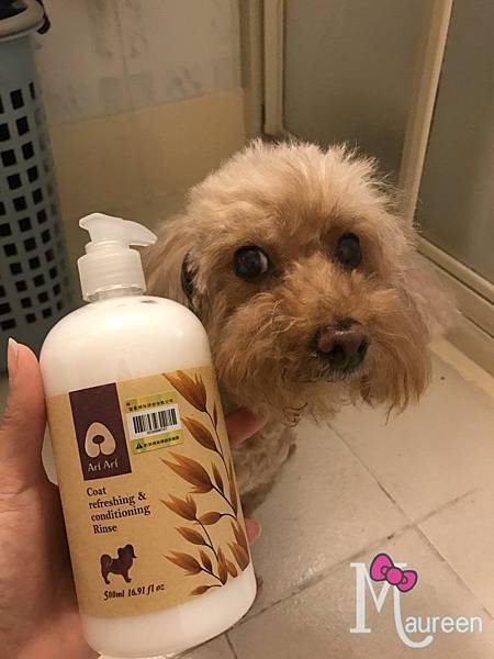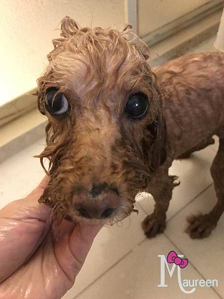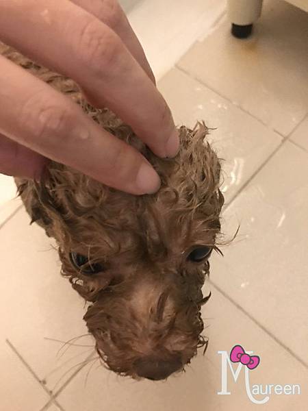 使用護毛乳前,先將哈妮洗淨她的毛髮喔!(這小妮子竟然白眼看我 XDD)