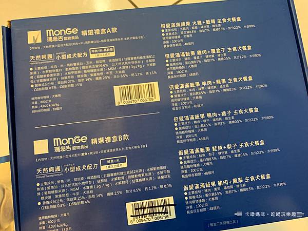 ⬆️先來看看背面的說明吧!原來裡頭是含有乾濕糧混合的禮盒,拿來送禮還滿落落大方的呢!🎁🎁