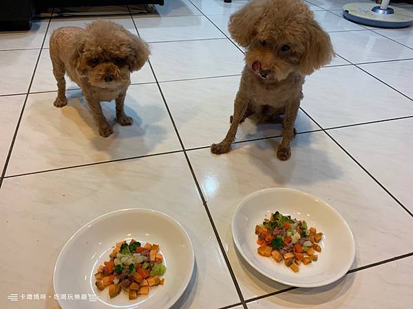 ⬆️準備來讓他們嚐嚐蔬果餐盒囉!兩毛很開心的聞呀聞的😉😉😉